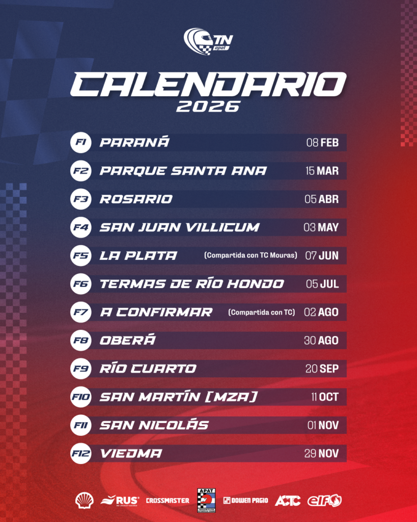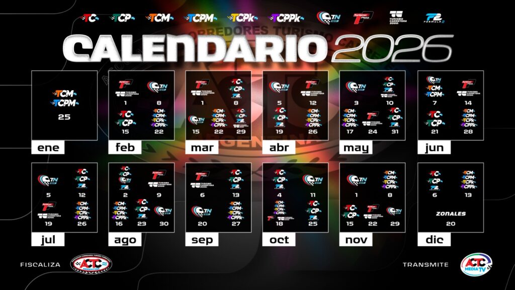 Por el lado del TC dará comienzo a su temporada el 15 de Febrero en el autódromo de El Calafate, provincia de Santa Cruz.