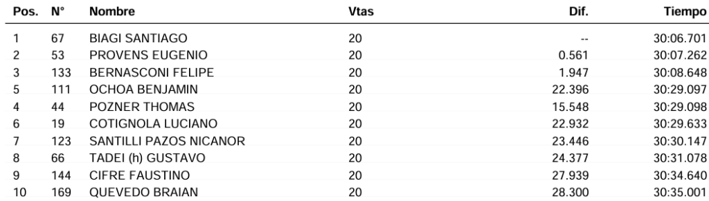 El domingo por la mañana se corrieron las dos series, con los triunfos de Felipe Bernasconi y de Santiago Biagi.